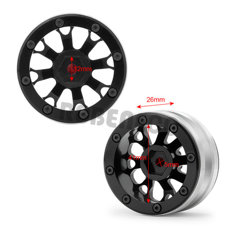 RCBENECO 1/2/4pcs 1.9'' Alloy Metal Beadlock Wheel Rims for 1/10 Scale AXIAL SCX10 D90 TRX4 CC01 RC Crawler