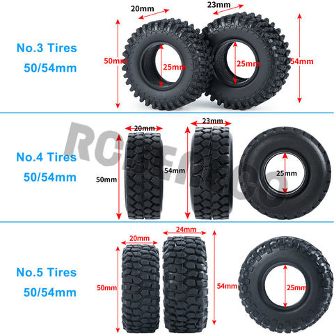 RCBENECO 4PCS 1.0" Soft Rubber Tyres 50/54mm Width Wheel Tires for 1:24 Axial SCX24 90081 AXI00001 AXI00002 RC Crawler