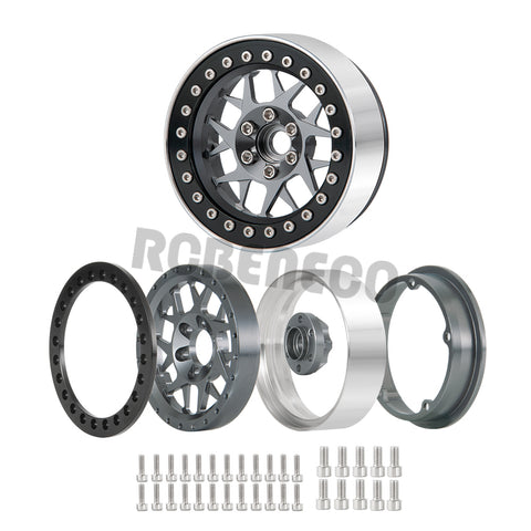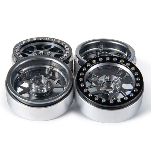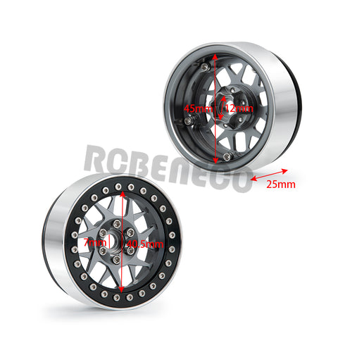 RCBENECO 4pcs 1.9" Alloy Metal Beadlock Wheel Rims For SCX10 TRX4 D90 CC01 TF2 1/10 RC Crawler