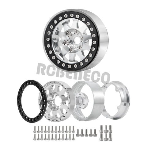 RCBENECO 4pcs 1.9" Beadlock Wheel Rim 10-Spoke Wheel Hub for 1:10 RC Crawler Axial D90 SCX10 CC01 TRX4