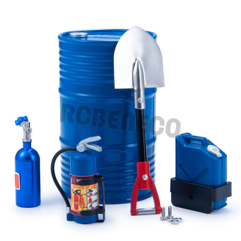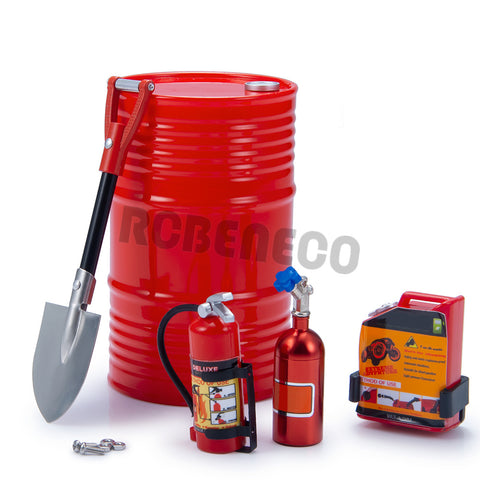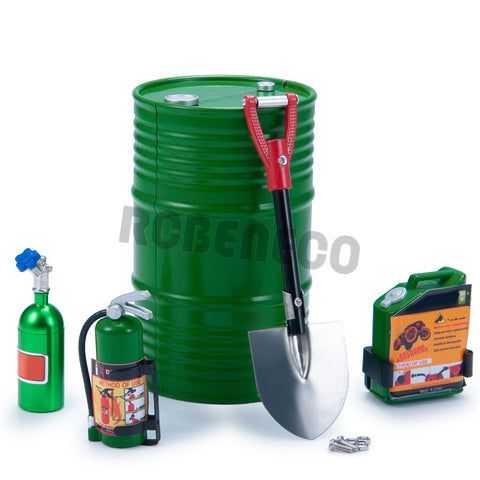 RCBENECO 5PCS RC Car Simulated Decorations Kit Oil Drum Mini Shovel Fire Extinguisher Nitrogen Bottle for 1/10 RC Crawler Car