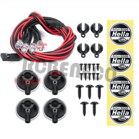 RCBENECO Hella Light RC Car Round LED Light & Cover 2/4LEDs Lamp for 1/10 RC Crawler Axial SCX10 Traxxas TRX4 Tamiya CC01 D90 TF2
