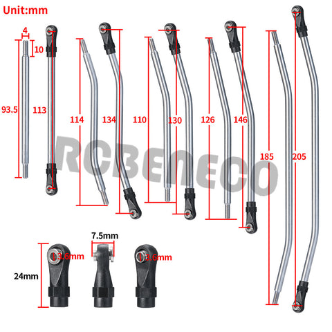 RCBENECO 8PCS Stainless Steel Linkage Link Rod Unassembled Kit with Rod End for 1:10 RC Crawler Axial Wraith 90048 90053 RR10